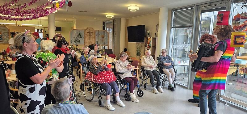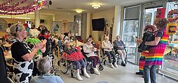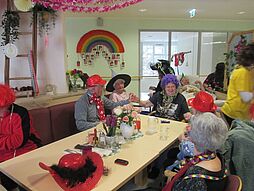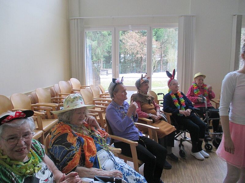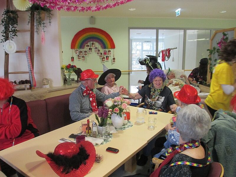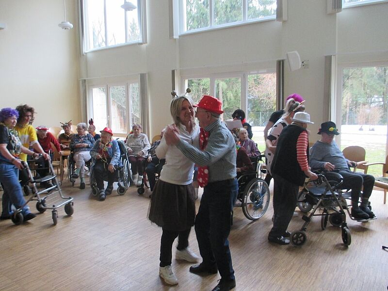 Am Faschingsdienstag wurde der Fasching in den Wohnbereichen wieder so richtig gefeiert. Lustig ging es in den Wohnbereichen zu. In jeder Wohngruppe wurde gespielt, gelacht, gesungen, mit Sekt angestoßen, ja sogar getanzt. Anschließend wurde ein Faschingszug aller Bewohner in den Festsaal gemacht, wo 2 Musiker für tolle Stimmung sorgten. Für die Bewohner war es ein kurzweiliger, abwechslungsreicher Nachmittag, den sie sichtlich genossen haben.