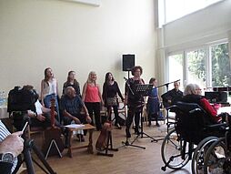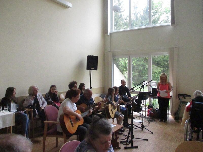 Vier Tage vor Muttertag begeisterte Evelyn Trauner mit ihren Schülerinnen und Schülern gesanglich unsere BewohnerInnen bei einem Muttertagskonzert. Musikalisch ging die Reise von Schlager, Evergreens bis zu Musicaldarbietungen. Der älteste Schüler, bereits über 80 Jahre, gab mit einer Schülerin zusammen auf der Gitarre ein Instrumentalstück zum Besten. Die Bewohner wurden bei Mitmachliedern sichtlich animiert und so wurde es ein lustiger, fröhlicher Nachmittag.