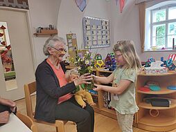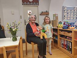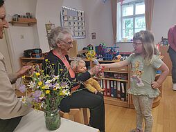 Mit einer besonderen Überraschung besuchte Frau Amalia Plursch, Bewohnerin des Altenheims Grünburg, den Kindergarten Leonstein: Sie überreichte den Kindern die Puppe Jakob, die sie liebevoll mit einer selbstgestrickten Hose und Weste ausgestattet hatte. Zuvor hatten die Kinder die Puppe bei einem Besuch im Altenheim mitgebracht – noch ohne Kleidung, aber mit viel Charme. Die rührende Geste sorgte für große Freude bei den Kindern und zeigte, wie schön generationenübergreifende Begegnungen sein können.